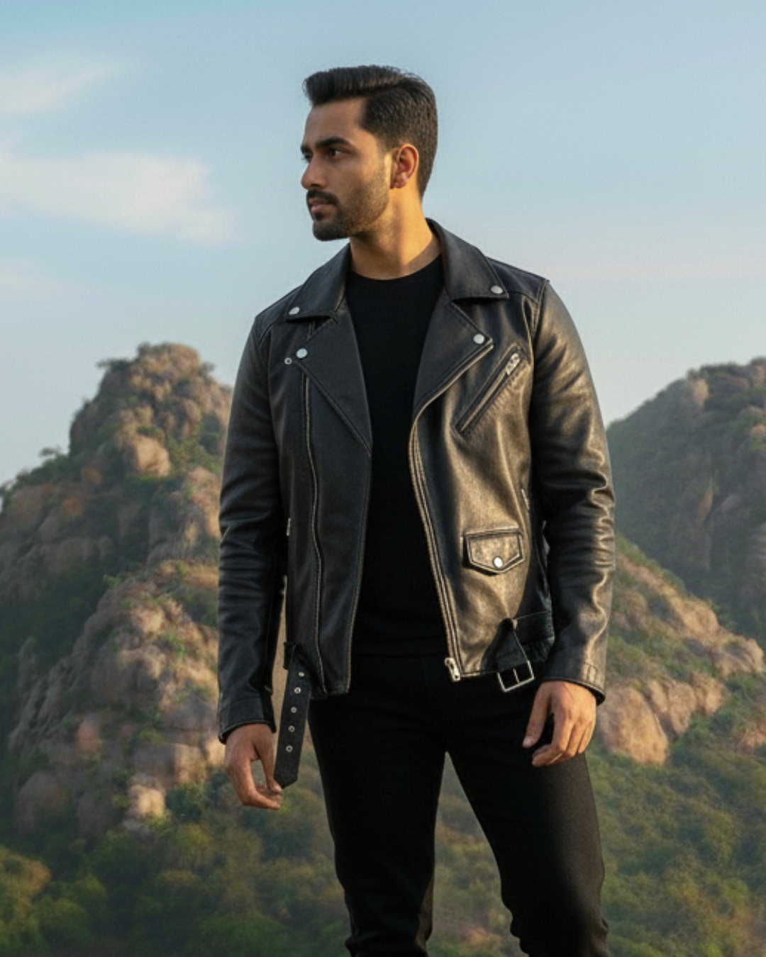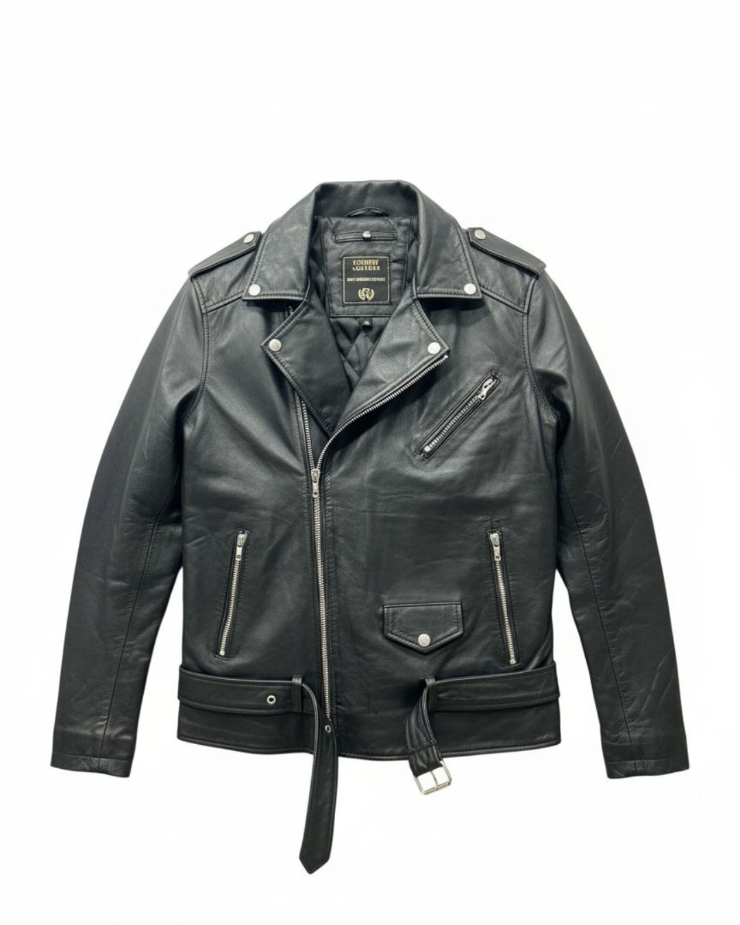 Designed with a tailored fit and iconic asymmetrical zip closure, this jacket blends classic biker attitude with modern minimalism. The supple leather molds beautifully to the body, ensuring comfort without compromising structure. Finished with silver-tone hardware, reinforced stitching, and premium detailing, the Vigilante Jacket is a timeless statement piece built for those who appreciate luxury and craftsmanship.